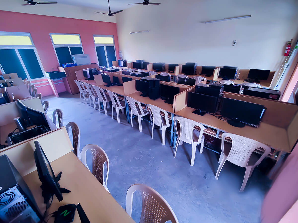Each classroom is equipped with a terminal and internet access. Besides, there are 50 computers which are networked in two different computer labs. UPS provides power for the entire day in the absence of main supply and the lab is fully equipped in all respects. The facilities in the lab enables each child to have its own independent session for practice and for perfecting its learning. A total of 90 terminals are fully functional from three servers for the whole institution.